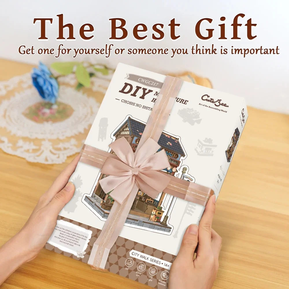 Cette Maison Miniature Choshi no Shitamachi vous plonge dans l’atmosphère d’un quartier traditionnel japonais, avec ses détails soignés et son charme authentique. Le kit contient 218 pièces à assembler, offrant une expérience créative immersive. Une fois montée, cette maison devient une pièce maîtresse pour votre bureau ou votre étagère, avec un éclairage LED sensoriel qui s’allume automatiquement pour une ambiance magique.