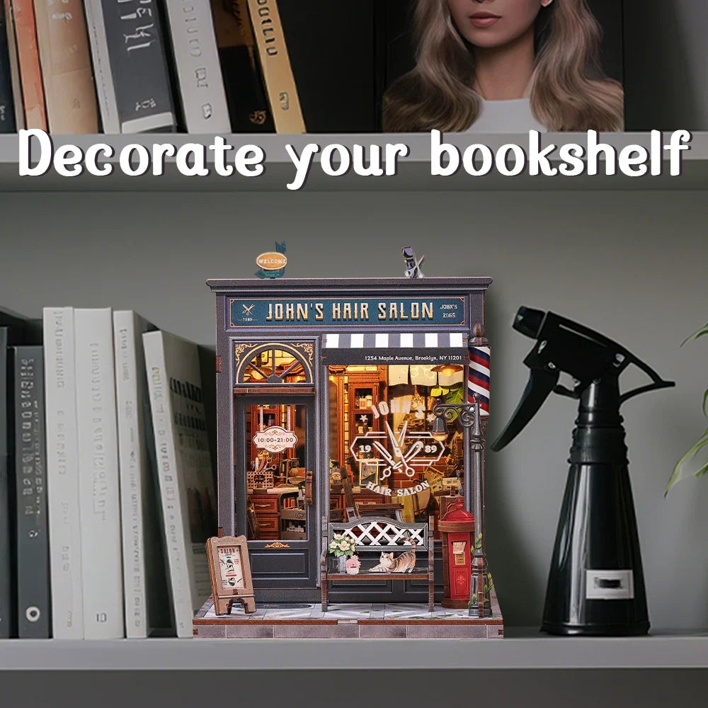 Maison Miniature Salon de Coiffure John DIY - 210 pièces et éclairage LED