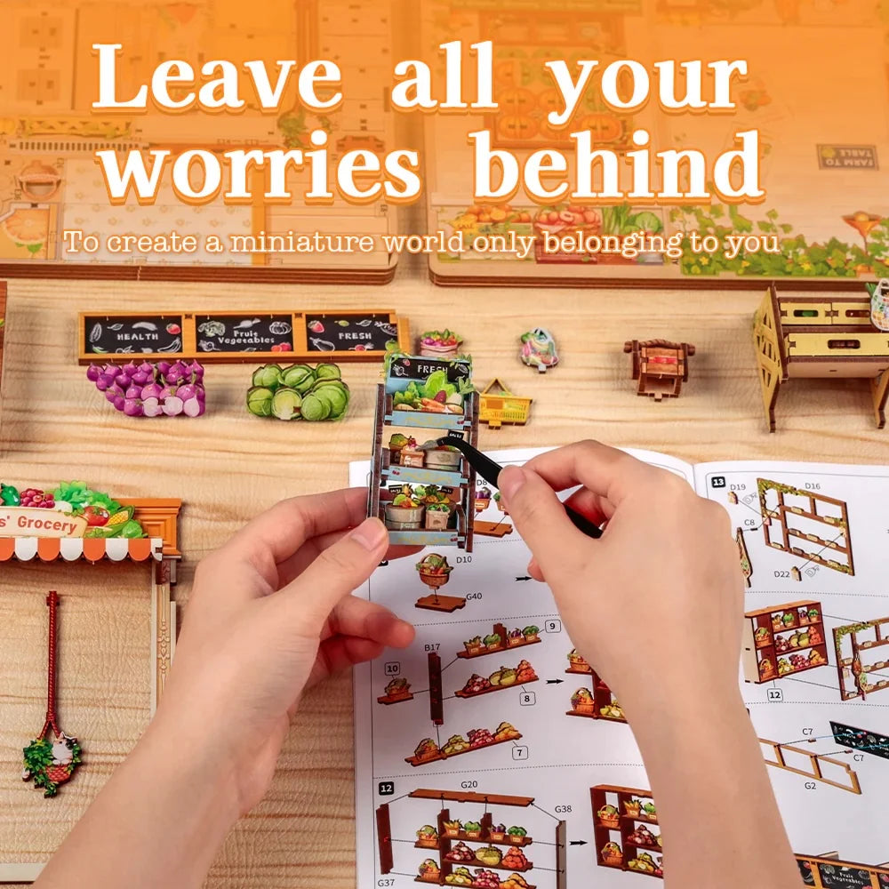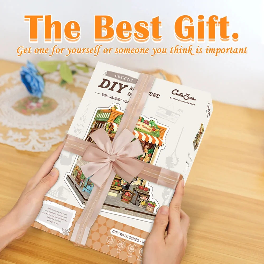 Cette Maison Miniature L'Épicerie Verte vous plonge dans l’univers vivant et coloré d’une boutique de fruits et légumes bio. Avec ses 301 pièces à assembler, ce kit offre une expérience créative immersive et relaxante. Une fois montée, cette maison miniature devient une pièce maîtresse pour votre bureau ou votre étagère, avec un éclairage LED intégré qui s’allume pour une ambiance chaleureuse et réaliste.